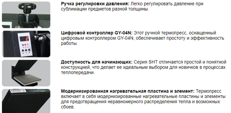 Планшетный пресс для термопереноса SHT-15 - является ручным прессом . Закрывание и открывание плиты - осуществляется оператором.