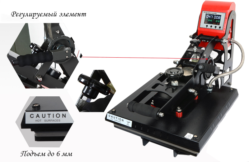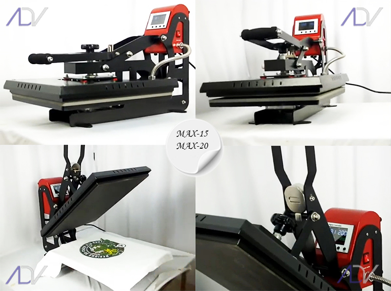 Прессы для термопереноса MAX-15 / MAX-20 с рабочей поверхностью плиты размером 380 х 380 / 400 x 500 мм подходят для термопереноса на футболки, пазлы, коврики для мышек, костеры и т.д. Применяется при изготовлении флажков и флагов, дипломов и сертификатов на металле, бейджей, металлических визиток, фотокамней, и другой рекламно-сувенирной продукции, имеющей ровную, плоскую поверхность.