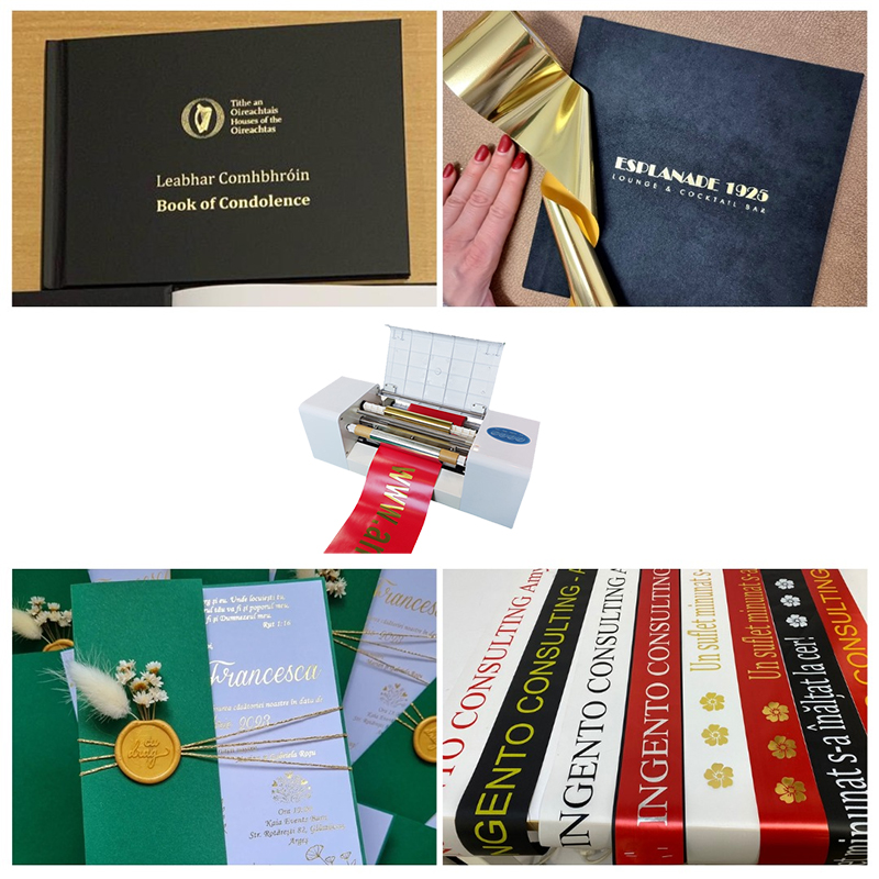 Применение: обложки книг, кожа, бумага, пригласительные билеты, свадебные открытки, пленка, этикетки, ПВХ, наклейки, сертификаты, пакеты, билеты и т. д.